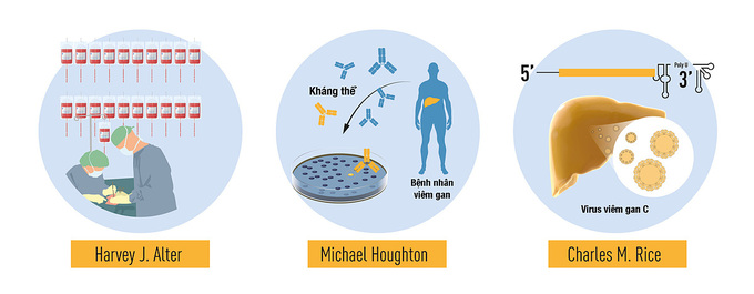 Tóm tắt quá trình ba nhà khoa học khám phá ra virus viêm gan C. Ảnh: Nobel Prize